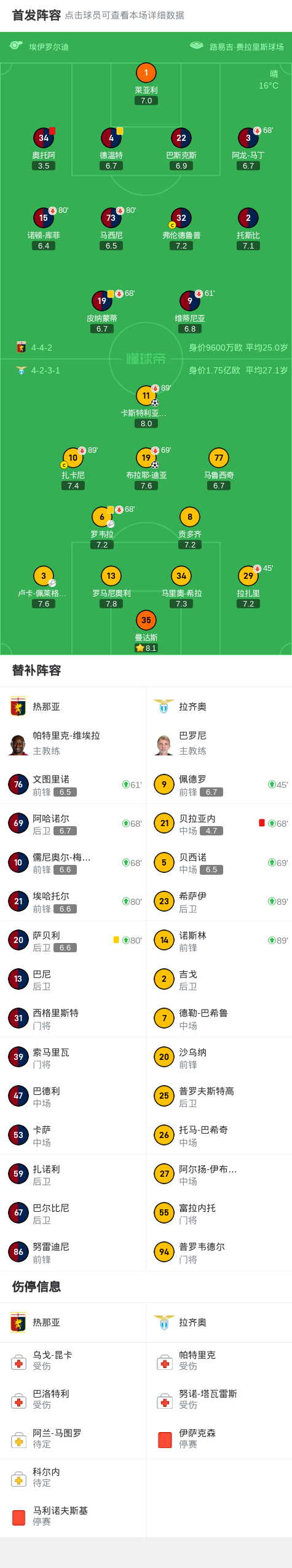比赛的终场哨声响起时,拉齐奥凭借两粒进球以2-0战胜热那亚,全取三分。热那亚球员们在场上耐心地和对手握手致意,虽然遗憾输掉比赛,但依旧展现出了体育精神。球迷纷纷起立鼓掌,为两队的表现点赞。